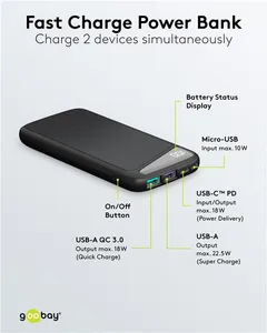 - 2x USB-A (1x USB-A Output max QC 3.0 Quick Charge 3.0 18 watt, 1x USB-A Super Charge 22.5 watt)