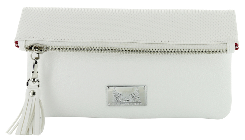 Lissa Wang kollektion. Perfekt väska till både vardag och fest. Den stora fickan är tillsluten av en dragkedja och viks sedan nedåt för att skapa en niftier utseende. Liten ficka på insidan med dragkedja och som en sista detalj - en söt tofs på sidan.