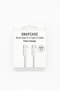 Upplev snabb och pålitlig laddning med Snapcase Braided (flätad) USB-C till USB-C-kabel. Kabeln är tillverkad med ett slitstarkt, vävt nylonutsida och utformad för att tåla vardagligt slitage samtidigt som den behåller ett rent, minimalistiskt utseende. De förstärkta kontakterna säkerställer en säker passform och långvarig prestanda. Perfekt för laddning och dataöverföring mellan dina USB-C-strömkällor och USB-C-enheter.
