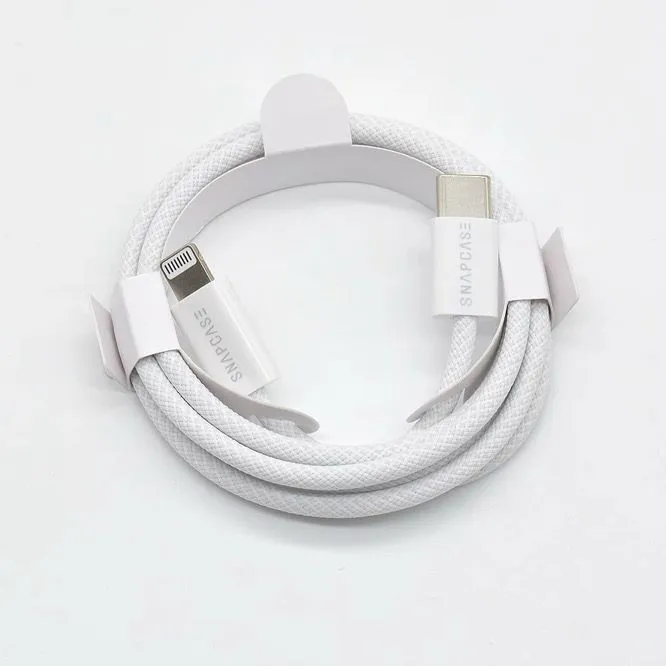 Upplev snabb och pålitlig laddning med Snapcase Braided (flätad) USB-C till Lightning-kabel. Kabeln är tillverkad med ett slitstarkt, vävt nylonutsida och utformad för att tåla vardagligt slitage samtidigt som den behåller ett rent, minimalistiskt utseende. De förstärkta kontakterna säkerställer en säker passform och långvarig prestanda. Perfekt för laddning och dataöverföring mellan dina USB-C-strömkällor och Lightning enheter.